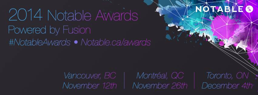 You can vote by heading over to Notable.ca, the nominees are all right there including yours truly. While you’re at it check out my friends, Shannon Kelly, Julio Reyes, Jen McNeely, Paul Crowe, Lisa Marie Chen and Meg Sethi; they are all amazing and totally deserve your votes.