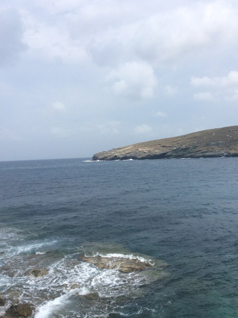 We finally got up the hill, so many hills here, and there was our friend from the night before, Alex. He called out to us, “Hey ladies!” After a few minutes of conversation he asked if we’d like to take a ride to Hora, the capital of the island, he had to go to the bank and we might like to see the capital. So wwe hopped in his car and headed off for more adventure.