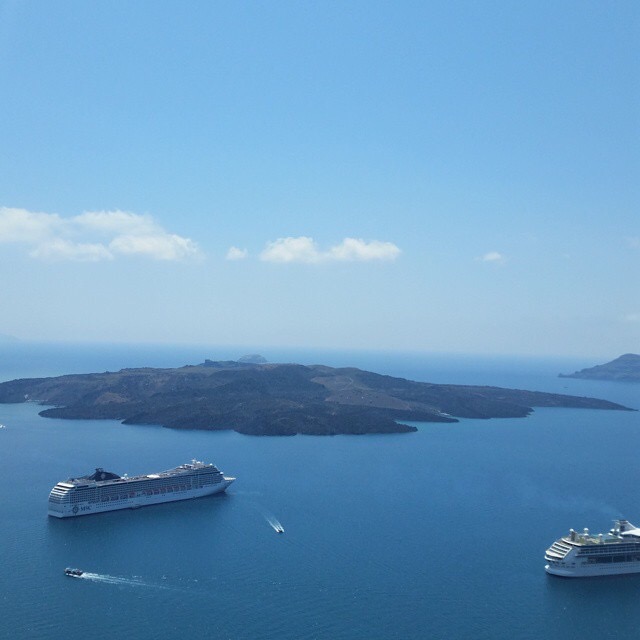 After returning to the boat we headed to the hot springs and swam around in the sulpherous waters for 30 minutes before returning to the port. Ash wasn’t such a huge fan of the donkey ride, so we took the cable car back to the top of the cliff and headed for lunch.