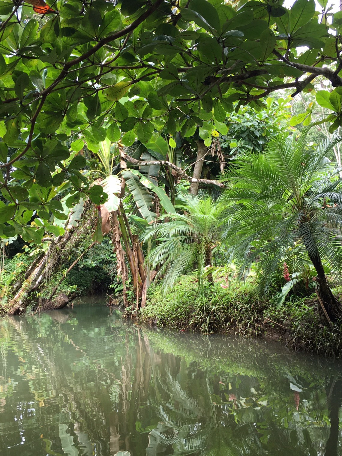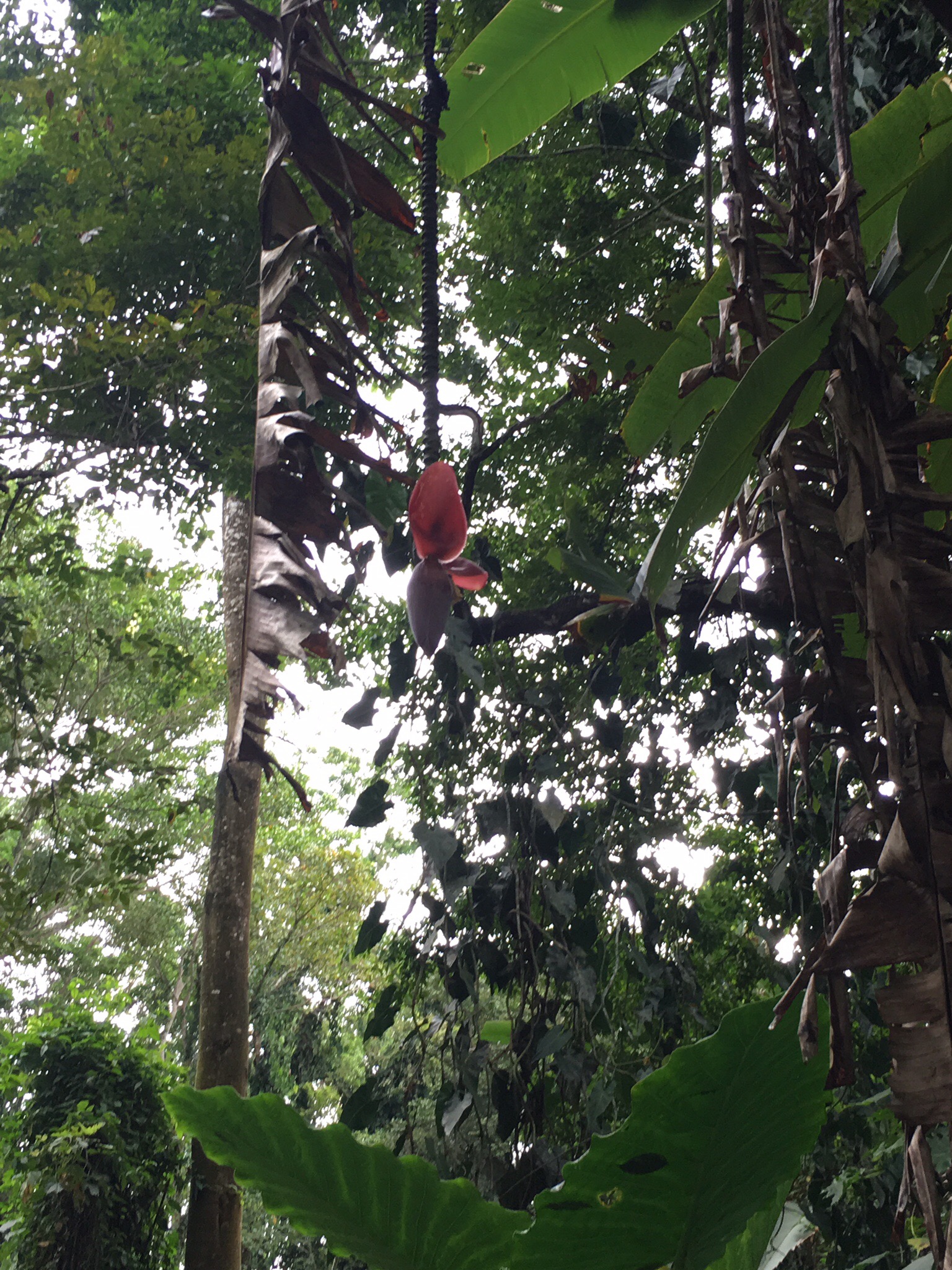 The morning tour starts off with a guided canoe ride down the river behind the sanctuary, it’s billed as a, “Canoe ride to see the sloth’s natural habitat.” But it’s so much more than that, the sanctuary is on the Carribean side of the country which means that it’s sitting smack dab in the middle of the rainforest, so the canoe ride is more about appreciating the space you are in than it is about seeing the sloth’s natural habitat. We saw crabs, bats, Montezuma oropendola (I 100% had to Google that spelling), banana flowers, and incredible flora that I never would have encountered outside of an exotic flower shop had I not come here. It was a fantastic way to start the day.