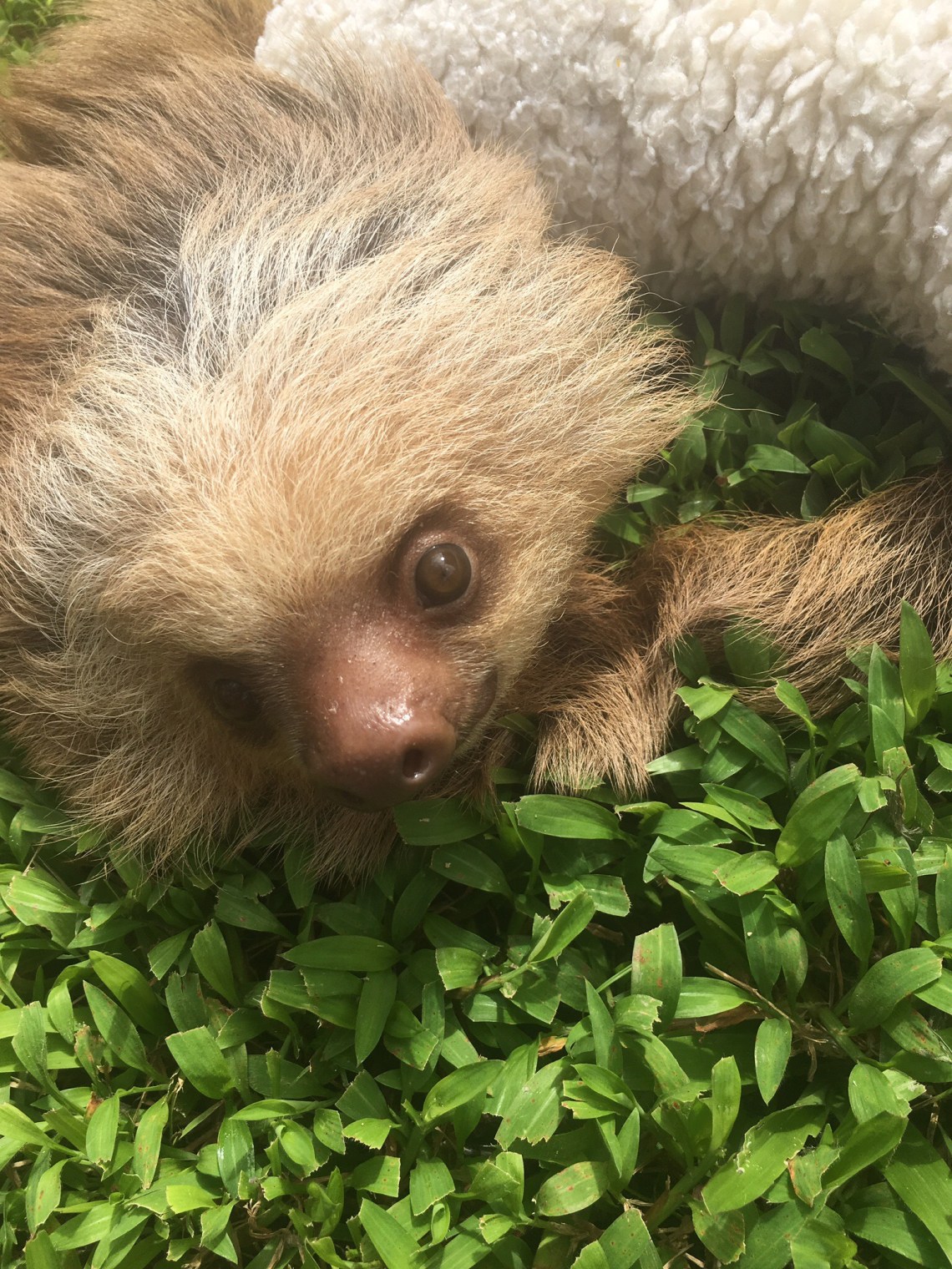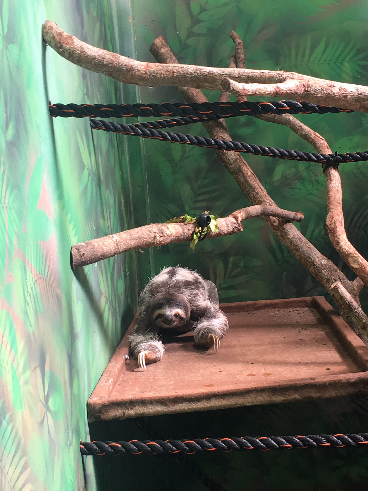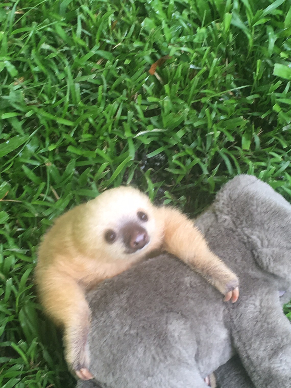 After the nursery tour the remainder of the group left us and we continued on for the Insider’s Tour, which is literally the best money I have ever spent. When we walked back towards the NICU it was jungle gym time so I sat on the grass and watched the baby sloths play with their toys and on the gym. At one point, Marshmallow tried to climb me, and while you’re not supposed to touch the sloths yourself I let her hang on to my shorts for a bit. Who wouldn’t? It’s hard to explain what it feels like to be surrounded by happy crawling baby sloths, there aren’t really words to describe how happy I felt in that moment. I took a selfie with a sloth (slothie?). I got booped on the nose by a happy little sloth who probably just wanted to say hello. I sat on the grass in paradise and played with baby creatures that until this point in my life I had only dreamed about seeing. There are no accurate words that can explain what today meant to me.
