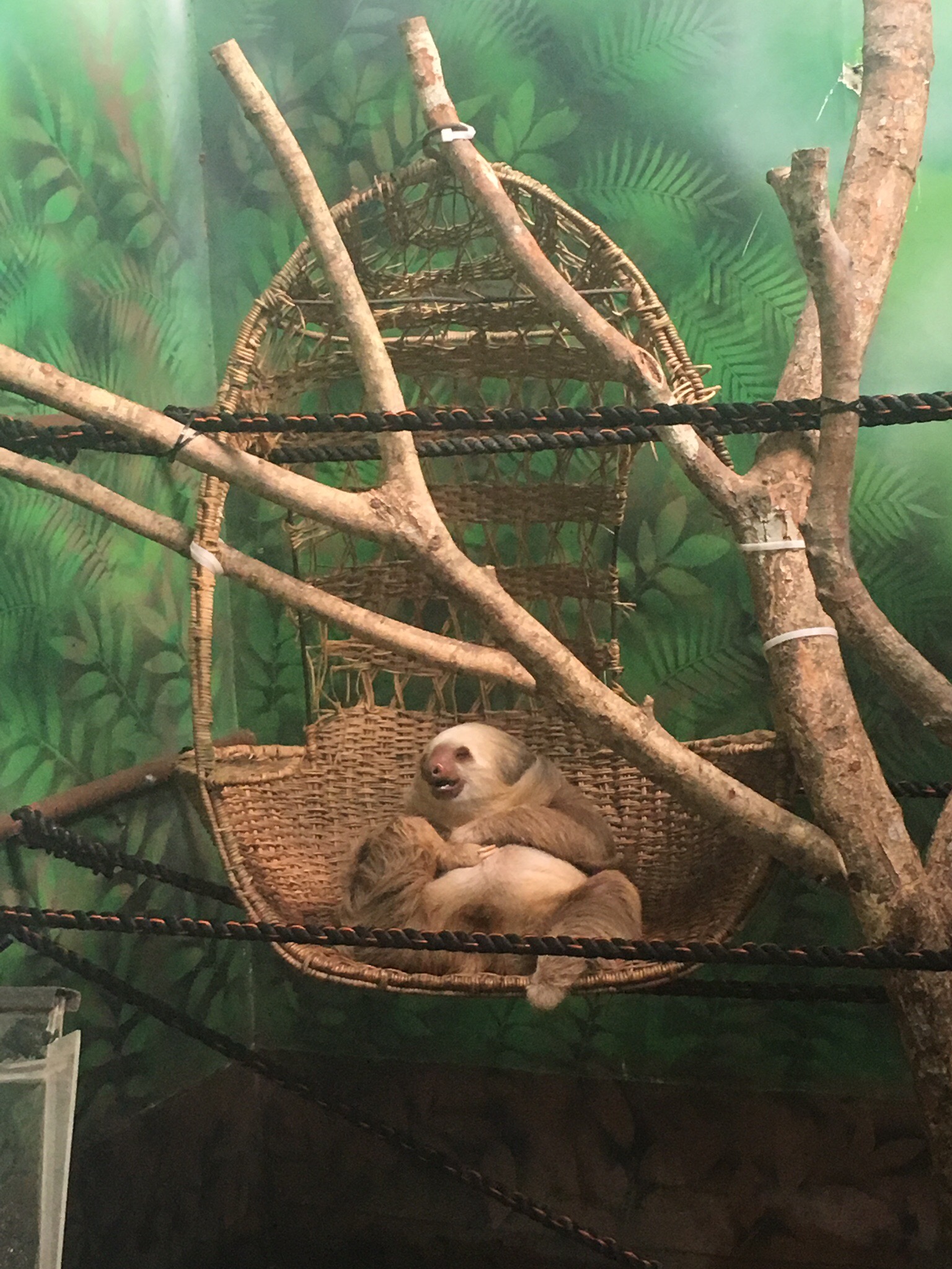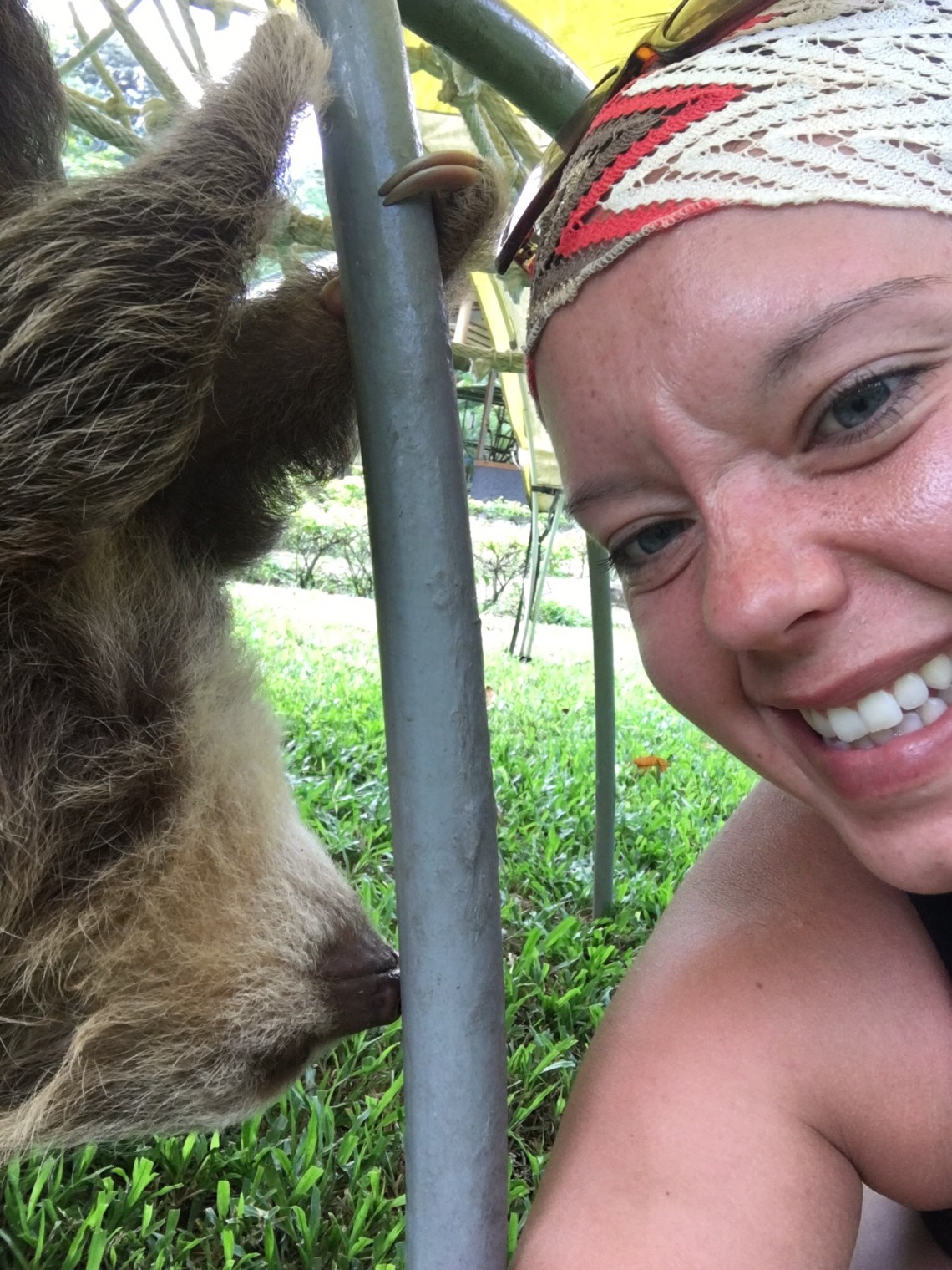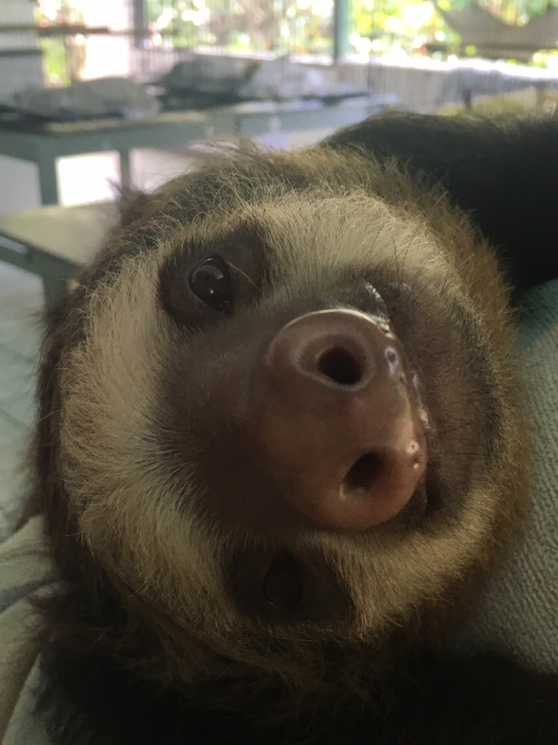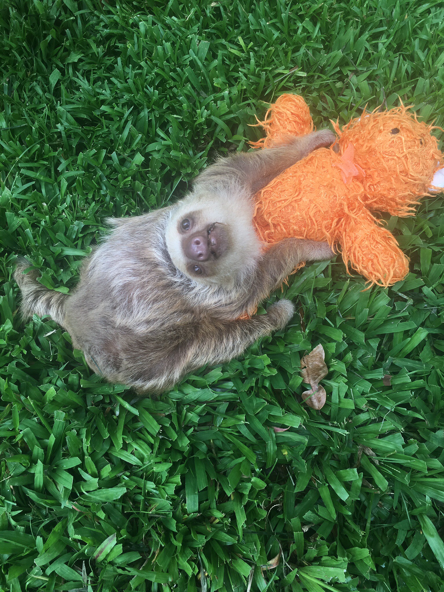 After the nursery tour the remainder of the group left us and we continued on for the Insider’s Tour, which is literally the best money I have ever spent. When we walked back towards the NICU it was jungle gym time so I sat on the grass and watched the baby sloths play with their toys and on the gym. At one point, Marshmallow tried to climb me, and while you’re not supposed to touch the sloths yourself I let her hang on to my shorts for a bit. Who wouldn’t? It’s hard to explain what it feels like to be surrounded by happy crawling baby sloths, there aren’t really words to describe how happy I felt in that moment. I took a selfie with a sloth (slothie?). I got booped on the nose by a happy little sloth who probably just wanted to say hello. I sat on the grass in paradise and played with baby creatures that until this point in my life I had only dreamed about seeing. There are no accurate words that can explain what today meant to me.